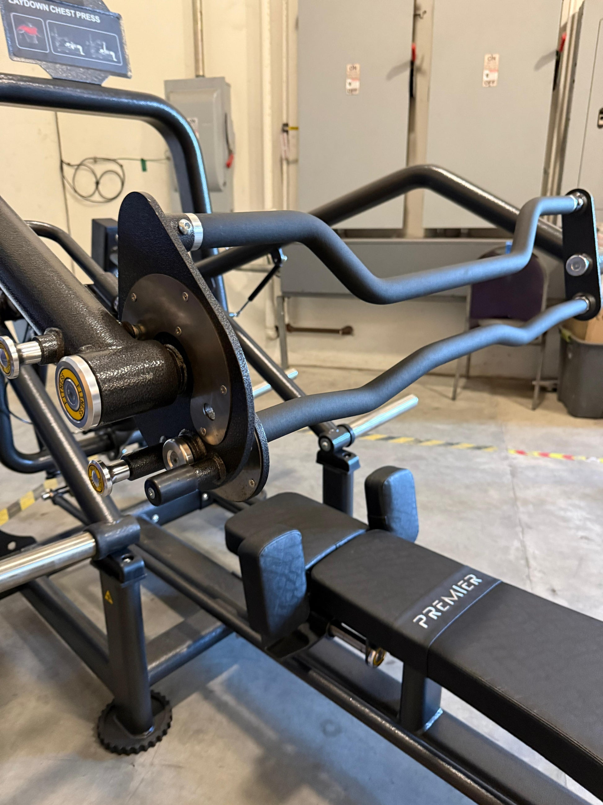 The Premier Horizontal Chest Press is built to deliver powerful, controlled pressing with maximum comfort and versatility. Designed for lifters of all experience levels, it features multi-grip handles that adjust up and down, allowing users to customize their pressing path and achieve a full, natural range of motion.